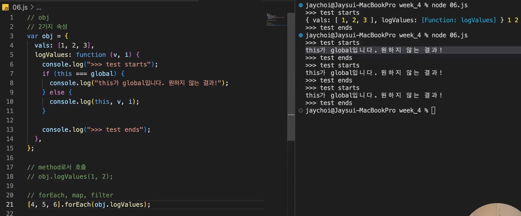 ✅ 콜백 함수로 어떤 객체의 메서드를 전달하더라도, 그 메서드는 메서드가 아닌 함수로 호출해요.