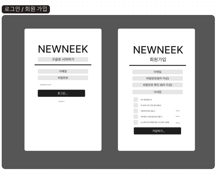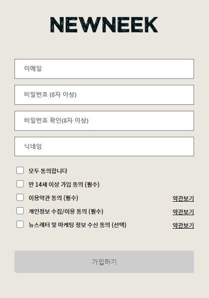 ํ๋ก์ ํธ ์ค๋ช : https://newneek.co/์ ํ ๋๋ก ํ๋ก ํธ์๋์ ๋ฐฑ์๋์ ๊ธฐ๋ฅ์ ๊ทธ๋๋ก ๊ตฌํํด๋ณธ๋ค.