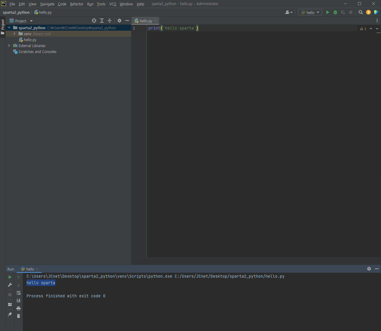 - ⛔주의! Location - 끝이 \\venv 로 끝나는지 확인