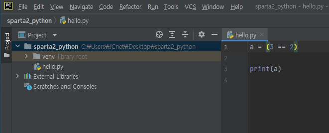 y = False # 거짓
