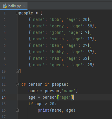 ✅ 리스트에서 나이가 20보다 큰 사람만 출력